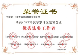 王海軍總經(jīng)理獲評(píng)“優(yōu)秀法務(wù)工作者”、森信建設(shè)獲評(píng)“優(yōu)秀法務(wù)工作團(tuán)隊(duì)”